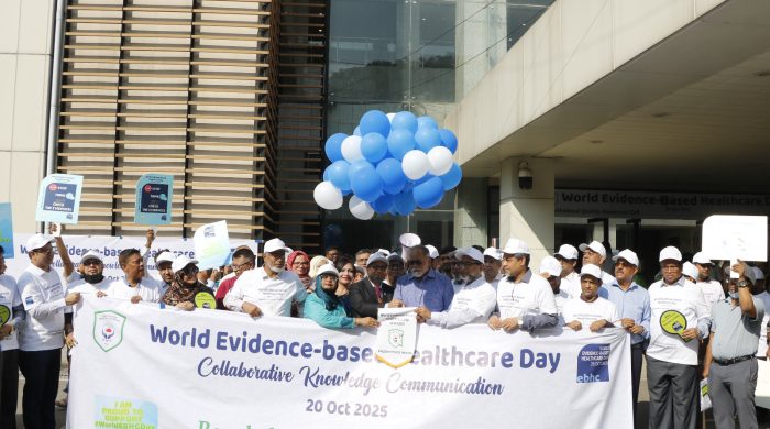 World Evidence-Based Healthcare Day-2025 was celebrated for the first time Monday, October 20, 2025, with various events including rallies, discussions, seminars, e-poster presentations, scientific paper presentations, debates, etc., at the initiative of Bangladesh Medical University (BMU) with the support of Oxford University. In all these events, knowledgeable speakers emphasized on ensuring the rights of patients by encouraging the practice of evidence-based medicine and ensuring qualitative changes in the healthcare sector. The knowledgeable speakers expressed their hope that it is possible to bring about major changes in the development of the overall health sector by encouraging the practice of evidence-based medicine, ensuring the provision of scientifically correct medical services, and improving the quality of medical services, medical education and research. If evidence-based decision-making can be implemented at every level of research, medical services and education activities, it will be possible to build a fair and efficient health system, which will further strengthen the trust of the people. Bangladesh Medical University hopes that this initiative will open new horizons for qualitative change in the country’s health sector. This time, the main theme of the day was ‘Collaborative Knowledge Communication – Reflects the Very Essence of Modern Healthcare and Education: Collaborative, Inclusive and Built on Taste’.